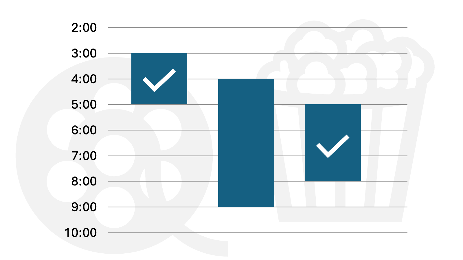 Maija has taken a day off from work and is going to binge-watch as many movies as she can. She has listed all the movies airing on TV today. Given the list, find the maximum number of movies she can watch from beginning to end.