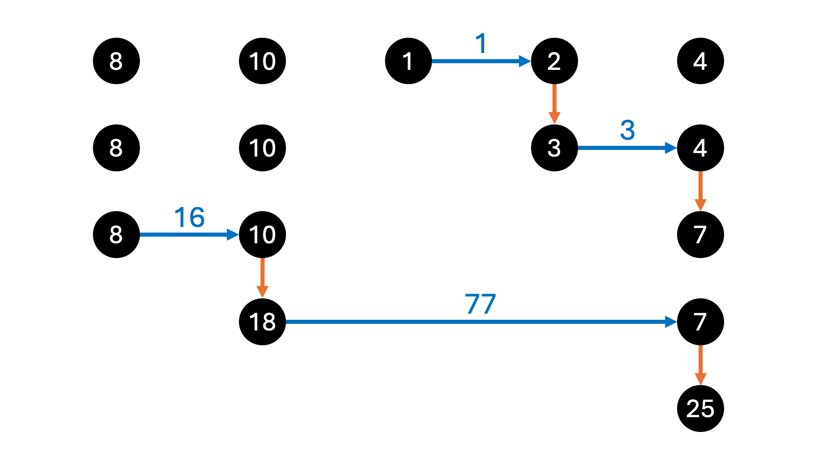 - Collide particles 12 and 345 → 12345. Cost 77