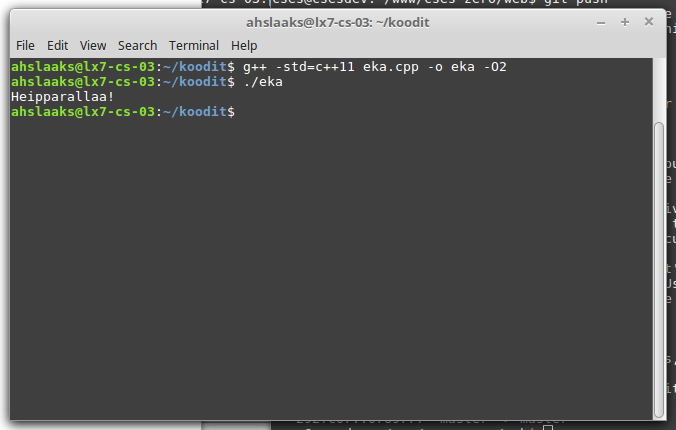 C++-ohjelmointia varten tarvitset tekstieditorin, jolla voit kirjoittaa koodia, sekä C++-kääntäjän (g++ on hyvä valinta). Seuraavassa on esimerkkinä yksi mahdollinen tapa ohjelmoida C++:aa Linux-ympäristössä.