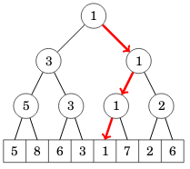 Seuraava kuva näyttää esimerkin, kuinka äskeisestä puusta voi löytää tehokkaasti pienimmän alkion: