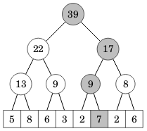 Kun taulukon alkio muuttuu, tämän tulee heijastua kaikkiin puun solmuihin, jotka ovat polulla juuresta alkioon. Esimerkiksi seuraavassa kuvassa alkion 7 muuttuminen vaikuttaa kaikkiin harmaisiin solmuihin: