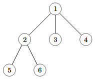 vector<int> tree[7]; tree[1].push_back(2); tree[1].push_back(3); tree[1].push_back(4); tree[2].push_back(1); tree[2].push_back(5); tree[2].push_back(6); tree[3].push_back(1); tree[4].push_back(1); tree[5].push_back(2); tree[6].push_back(2);