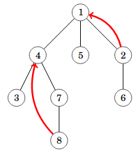 Tavallinen kysely puussa on selvittää solmun esivanhempi, johon pääsee kulkemalla tasoja ylöspäin puussa. Merkitään f(x,k) solmun x esivanhempaa k tasoa ylempänä. Esimerkiksi seuraavassa kuvassa f(2,1)=1 ja f(8,2)=4.