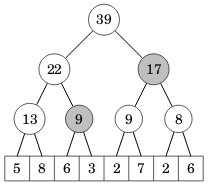 Välikyselyssä väli muodostetaan mahdollisimman korkealla puussa olevista solmuista. Esimerkiksi kun haluamme laskea välin [6,3,2,7,2,6] summan, saamme sen kahdesta ylemmästä solmusta laskemalla 9+17=26: