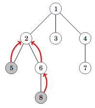 Tavallinen kysely puussa on selvittää solmun esivanhempi, johon pääsee kulkemalla tasoja ylöspäin puussa. Merkitään f(x,k) solmun x esivanhempaa k tasoa ylempänä. Esimerkiksi seuraavassa kuvassa f(2,1)=1 ja f(8,2)=4.