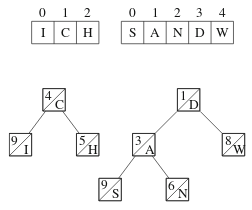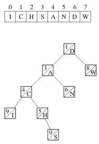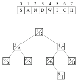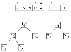 Seuraavassa on esimerkkinä treap, joka vastaa merkkijonoa SANDWICH: